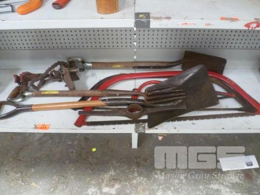 GARDEN TOOLS, PIPE VICE ATTACHMENTS, BOW SAWS, ETC