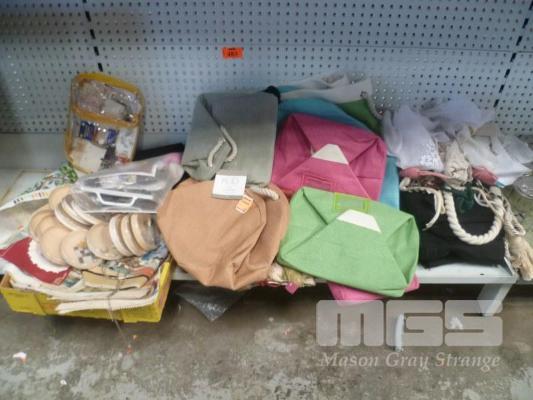 ASSORTED SEWING ACCESSORIES INC TAPESTRY NEW HAND BAGS, 5 x PAIRS NEW OLD STOCK BLACK JEANS, ETC