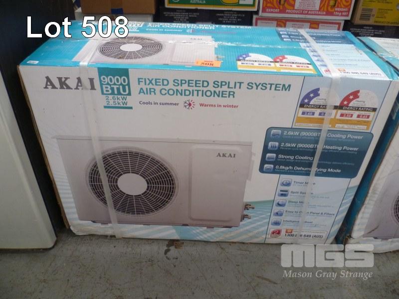AKAI FIXED SPEED SPLIT SYSTEM A/C, 9000BTU (SEALED IN ORIGINAL PACKAGING)