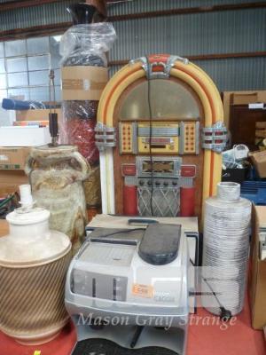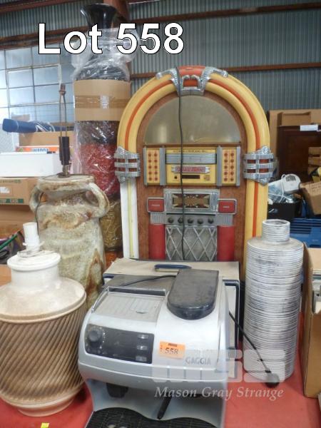 ASSORTED ELECTRICAL, INC; COKE MINI JUKE BOX, COFFEE MACHINE, 2 X LAMP BASES & GAGGIA COFFE MACHINE