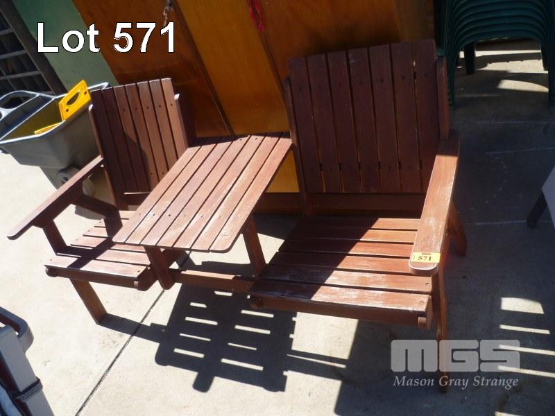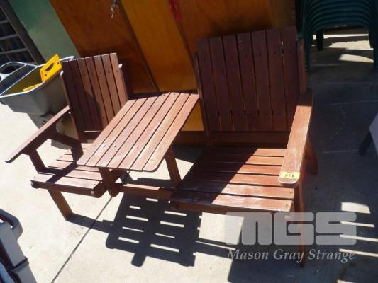 SLAT TIMBER BENCH SEAT WITH CENTRE TABLE