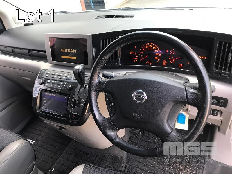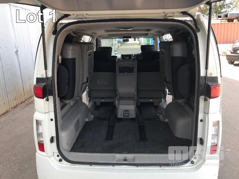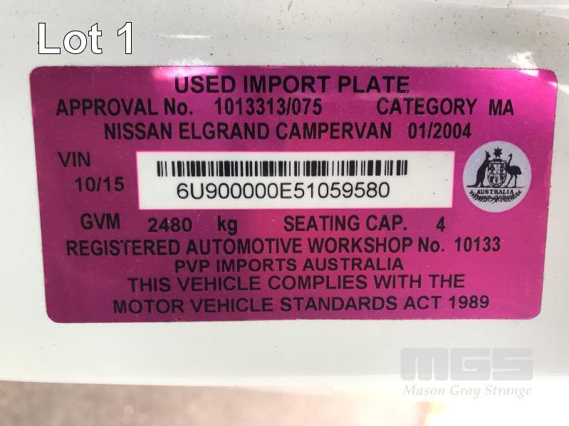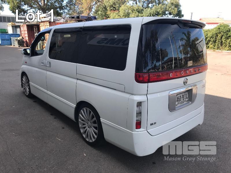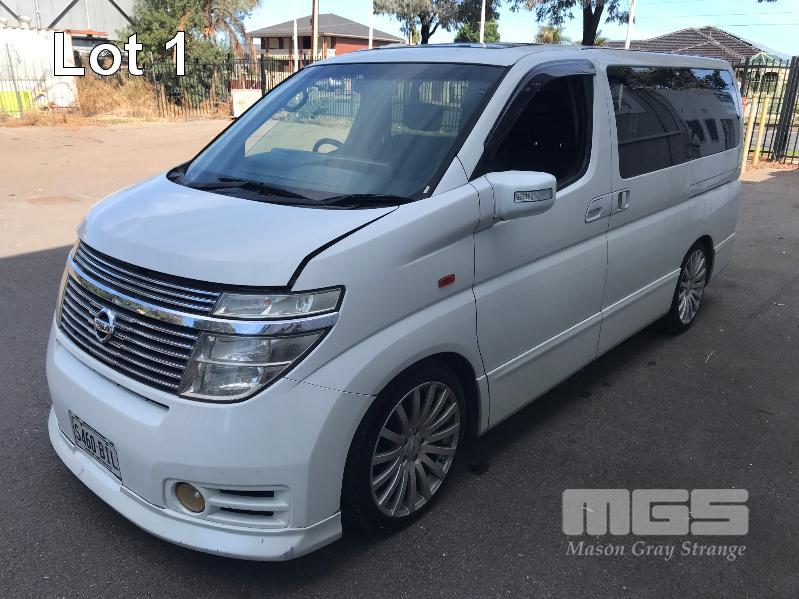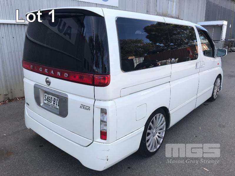 2004 NISSAN ELGRADE BLD HIGHWAY STAR VAN REG: S460 BIL (SA) VIN: 6U900000E51059580 ODO: 170,777kms SHOWING 3.5 LITRE, V6, 5 SPEED AUTOMATIC TRANSMISSION, PETROL, WHITE DUCO, 4 DOORS, 7 SEAT, FWD ABS, AIR BAG, AIR CON, ALLOY WHEELS, BLUETOOTH, FOG LAMPS, POWER STEERING, POWER WINDOWS, SAT NAV, SPARE WHEEL, SUNROOF, ** USED JAPANESE IMPORT ** AUTOMATIC PASSENGER SLIDE DOOR DVD REVERSE CAMERA KEY #2 (WITH 1 KEY/S, WITH OWNER'S MANUAL, WITH SERVICE BOOKS) CONDITION: REAR DRIVERS SIDE BUMPER - DAMAGED BONNET - DENT FRONT - CHIPS