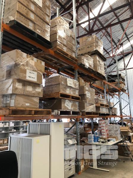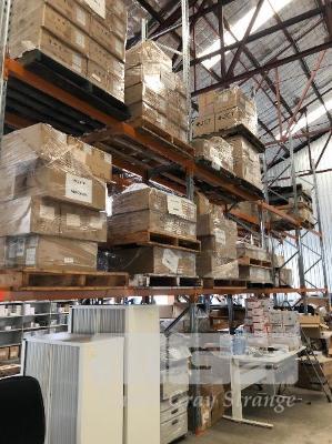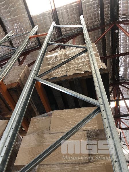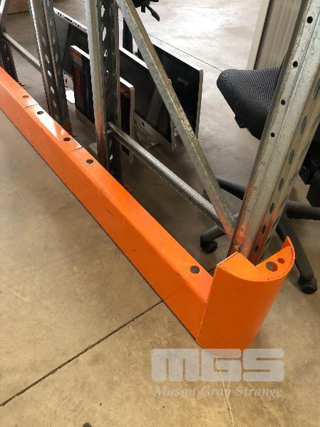 4 BAYS, PALLET RACKING, COLBY (AS NEW) 5 x GALV UPRIGHTS, 6.1m 18 x ORANGE CROSS BEAMS, 2.75m 5 x LINK BARS 1 x FORKLIFT PROTECTION BAR WITH SAFETY CLIPS (SOLD IN SITU, LOCATED AT MILE END, INSPECTION BY APPOINTMENT, BUYER TO REMOVE)