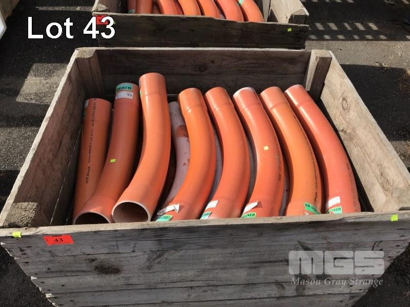 30 (APPROX) x PVC ELECTRICAL CONDUIT BENDS, 100mm, 45 DEGREE x 600mm, 1 x CRATE