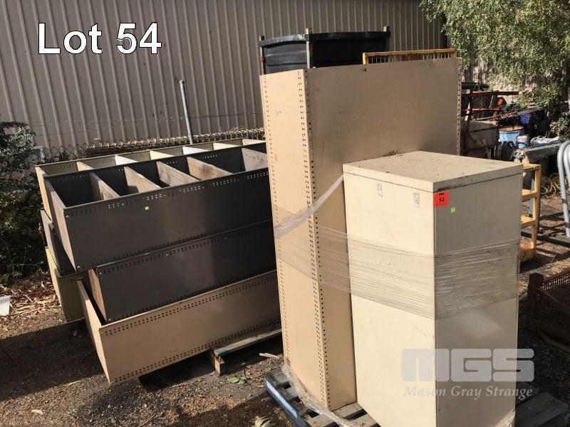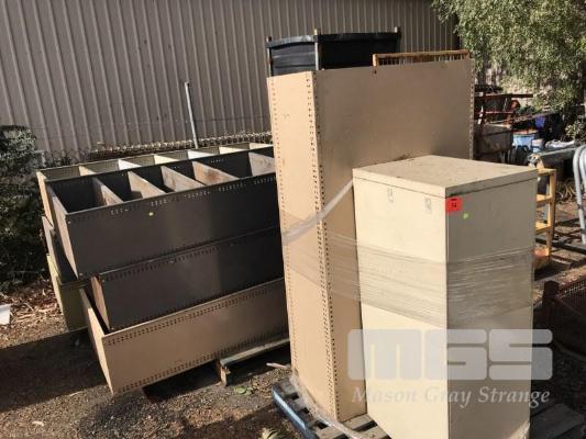 7 x BAYS ADJUSTABLE SHELVING, 180cm & 1 x FILING CABINET, 4 DRAWER