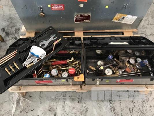 OXY KIT, BOC MASTERSTART ASSORTED TIPS, CONNECTORS, REGULATORS, CUTTING TORCH, GOGGLES & 2 x CASES