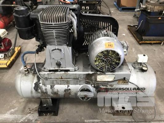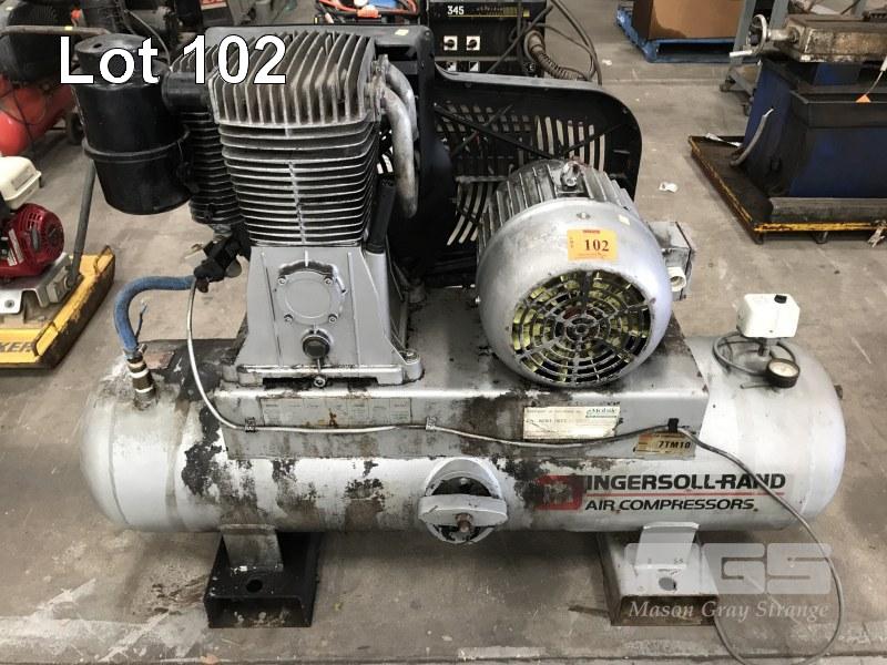WORKSHOP AIR COMPRESSOR, INGERSOL-RAND TWIN CYLINDER, BELT DRIVE 10HP, 415V, FORK POCKETS WITH WALL MOUNT SWITCH
