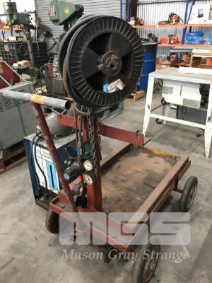 OXY WELD CART 4 WHEEL DRAWN CART, 100 x 60cm BOTTLE STAND, HOSE REEL, REGULATORS, CUTTING TORCH & GOGGLES