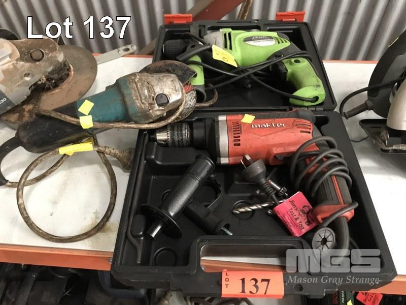 MAKITA 100mm ANGLE GRINDER, ROK IMPACT DRILL & MAKTEC GEARED DRILL, 240V
