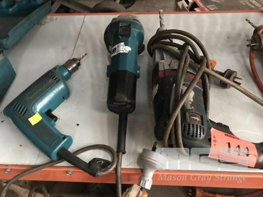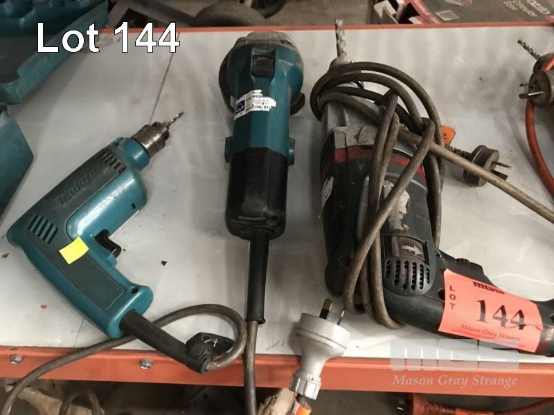 MAKITA 100mm ANGLE GRINDER, DRILL & METABO GEARED DRILL, 240V