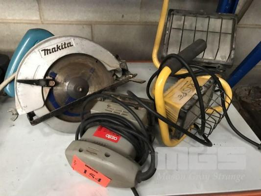 185mm CIRCULAR SAW,MAKITA WITH OZITO ORBITAL SANDER & 2 x WORK LIGHTS