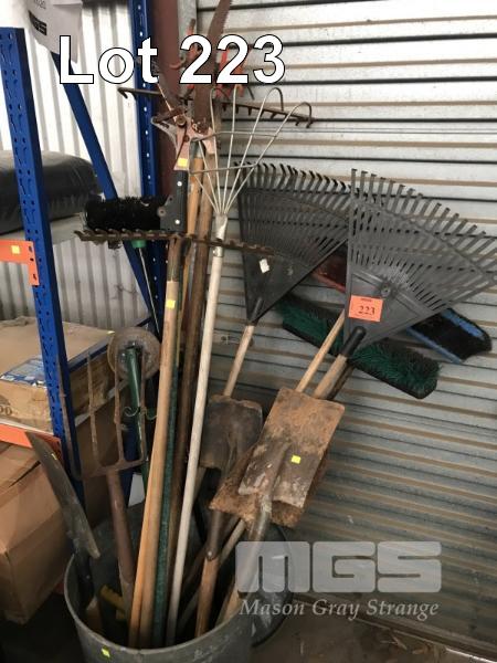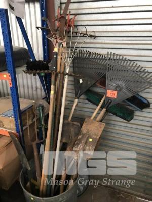 ASSORTED GARDENING HAND TOOLS, SHOVELS, RAKES, EDGERS, ETC
