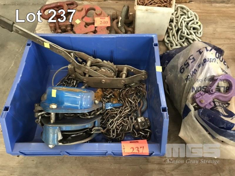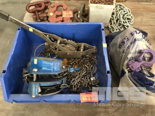 2 x 1 TONNE CHAIN BLOCKS WITH STEEL ROPE COME A LONG