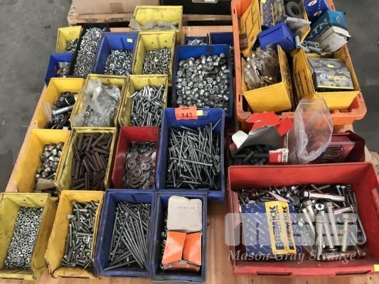 ASSORTED FASTENERS, BOLTS, WASHERS, NUTS, METAL SCREWS, ETC, 1 x PALLET