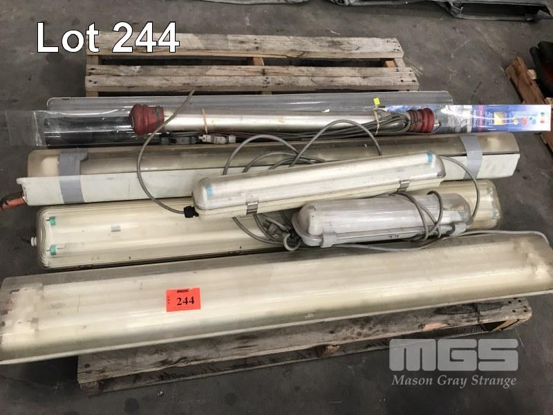 6 x ASSORTED WEATHERPROOF FLURO LIGHTS & WORK LIGHT, 240V