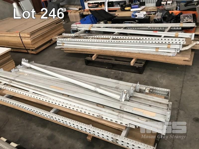 PALLET RACK SHELVING, 84cm (D) 4 x UPRIGHTS, 240cm 20 x CROSS BEAMS, 240cm 8 x CROSS BEAMS, 180cm WITH PARTICLEBOARD SHELVES