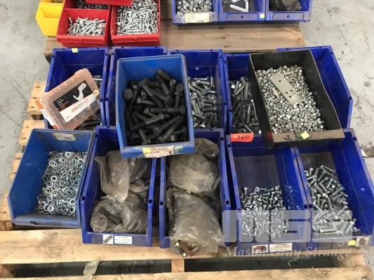 ASSORTED FASTENERS, BOLTS, WASHERS & NUTS, 12 x PARTS BINS