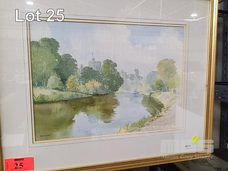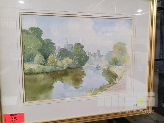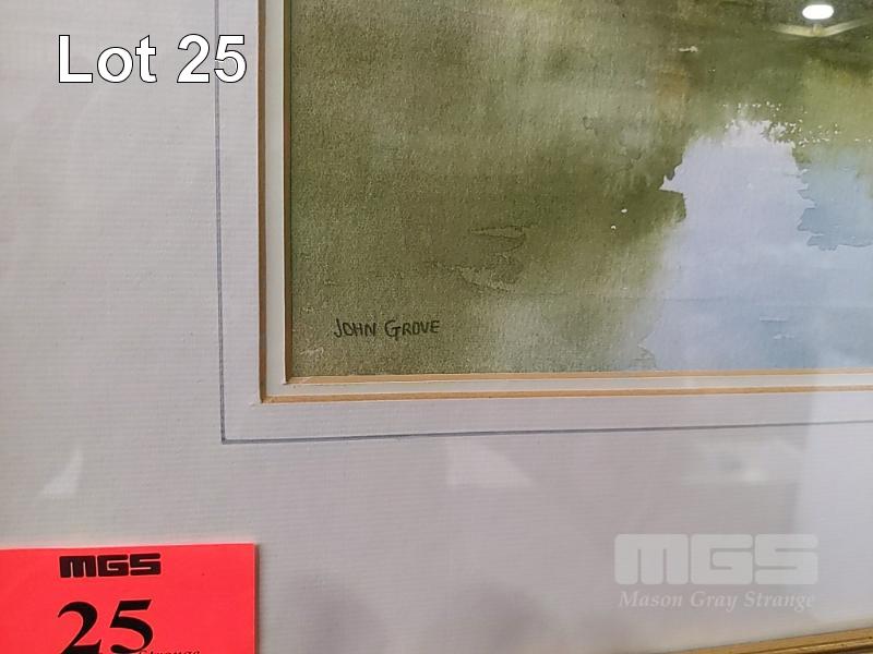 ORIGINAL WATERCOLOUR BY JOHN GROVE. ENGLISH RIVERBANK.