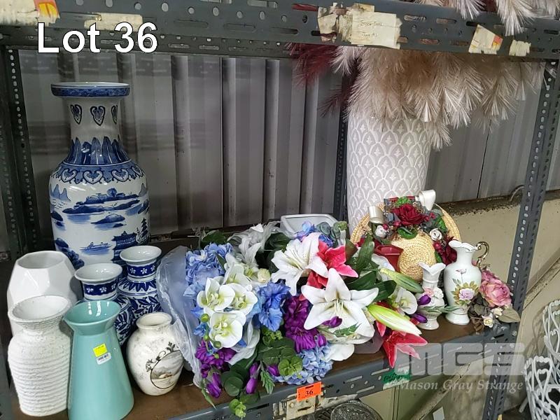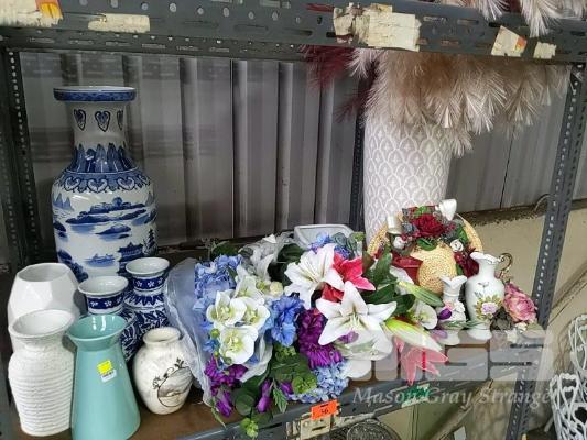 FLOOR VASES, VASES AND FAUX FLORAL BOUQUETS.