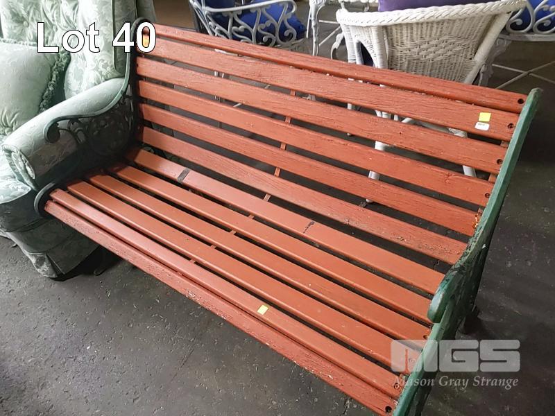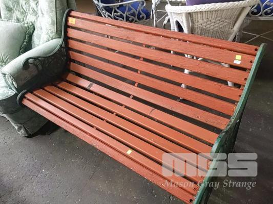 SLAT GARDEN BENCH SEAT WITH CAST ENDS.