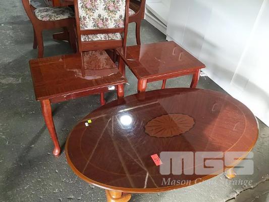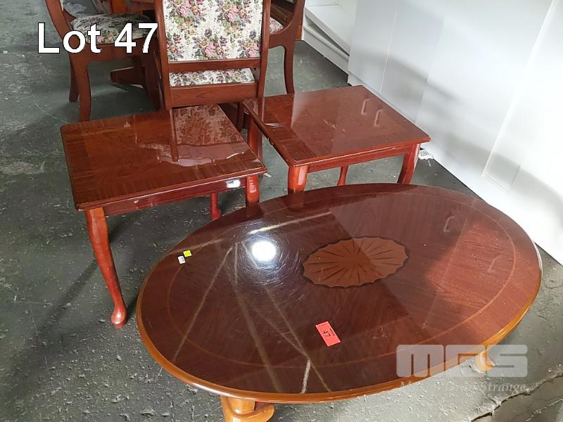 POLISHED WOODEN COFFEE TABLE 2 x MATCHING SIDE TABLES.