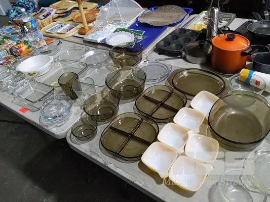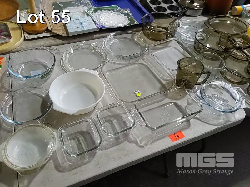 GLASS OVENWARE, SERVINGWARE AND JUGS. PYREX, DECOR, ANCHOR, ARCOROC ETC. 30 PIECES APPROX.