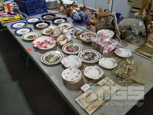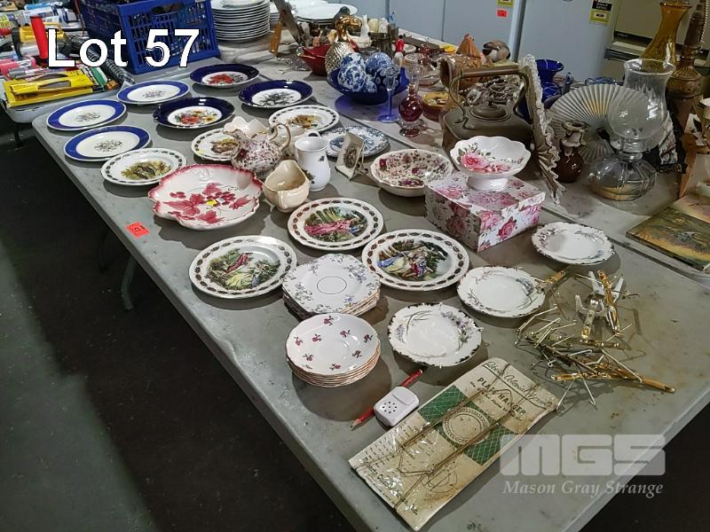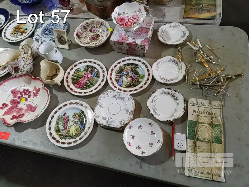 VARIOUS CHINA AND PLATE HANGERS (1 x TABLE).