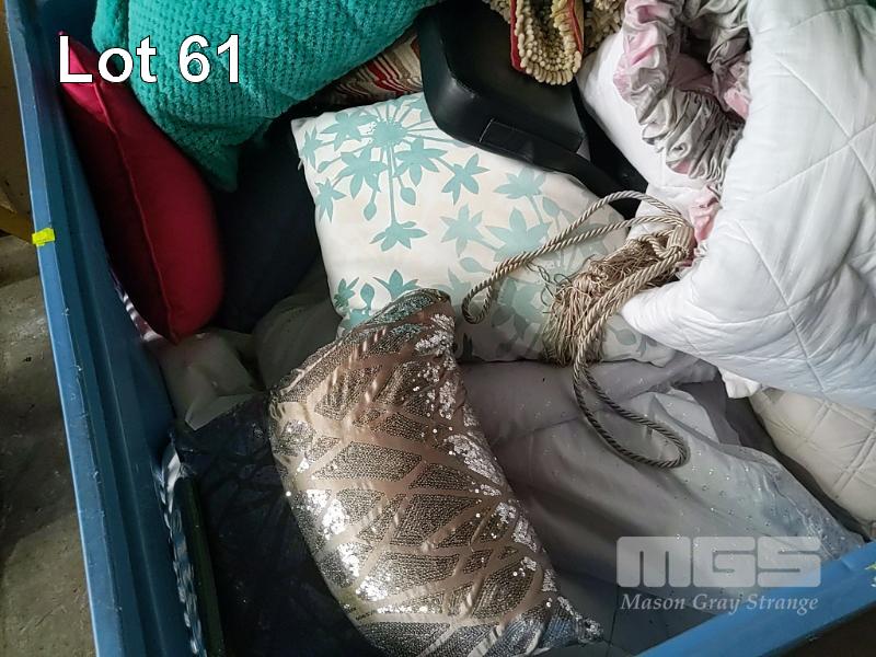 LARGE QUANTITY OF HOUSEHOLD LINEN INCLUDING, COUCH COVERS, DOONAS, THROW OVERS, BLANKETS, BED COVERS, CUSHIONS ETC (1 x CRATE - CRATE NOT INCLUDED)