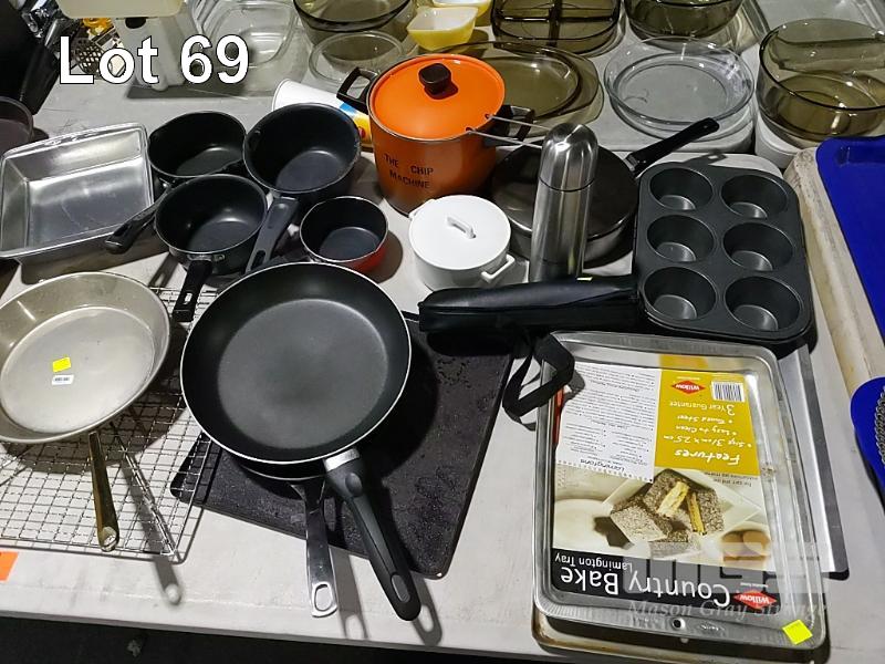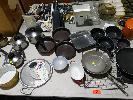 POTS, PANS, BAKING TRAYS FRYING PANS, COOKWARE ETC (1x TABLE).