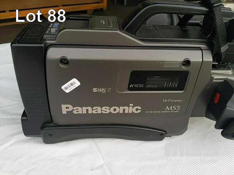RARE PANASONIC MS5 S-VHS MOVIE CAMERA, NV-MS5 WITH BATTERY, CHARGER & TAPE, ORIGINAL SHOULDER STRAP