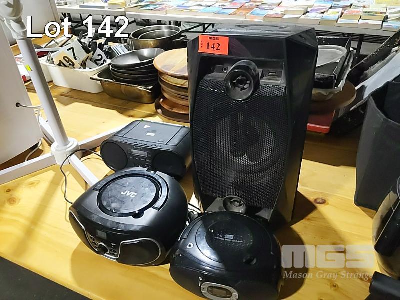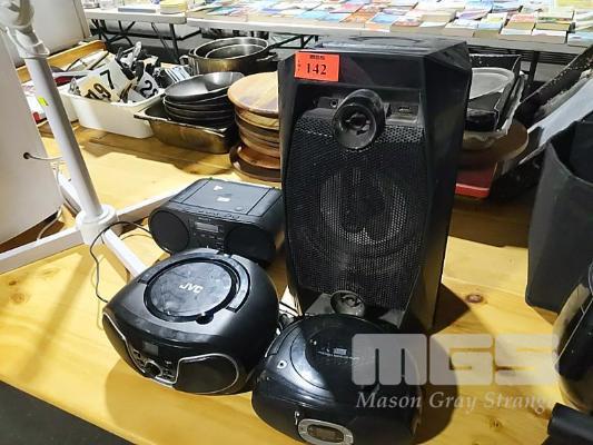 SONY PORTABLE CD PLAYER/RADIO (ZS-PS50). CD BOOMBOX WITH RADIO (NO BRAND MARKED). JVC PORTABLE CD PLAYER WITH BLUETOOTH (RD-N327A). JVC PORTABLE BLUETOOTH BATTERY SPEAKER (XS-YM8).