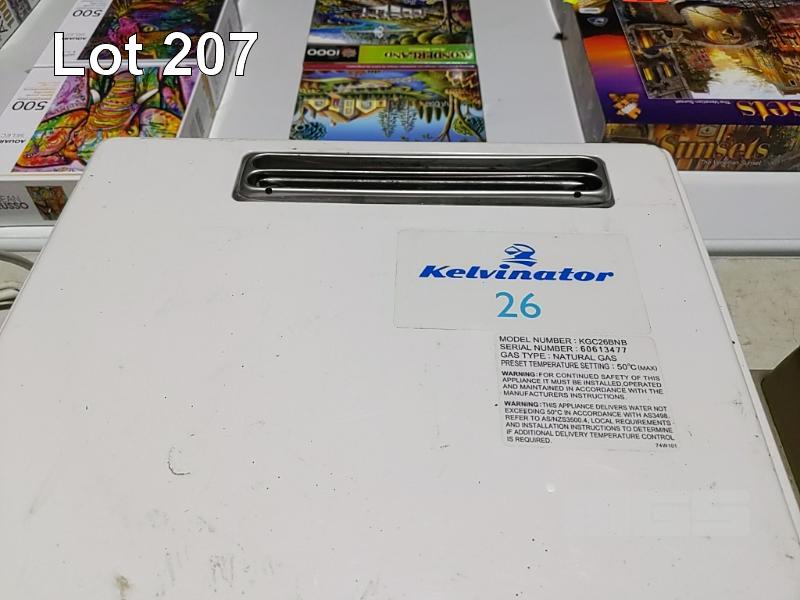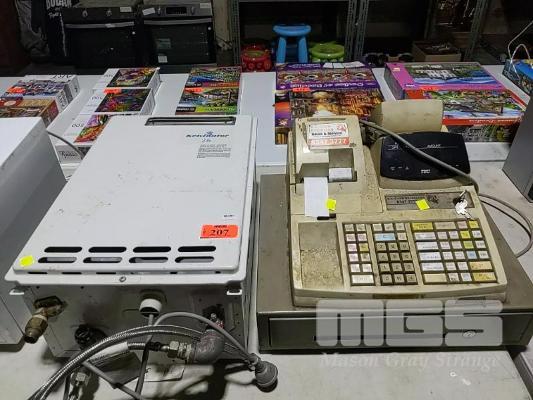KELVINATOR 26 NATURAL GAS INSTANTANEOUS HOT WATER SERVICE (KGC26BNB). TEC CASH REGISTER IN POOR CONDITION.