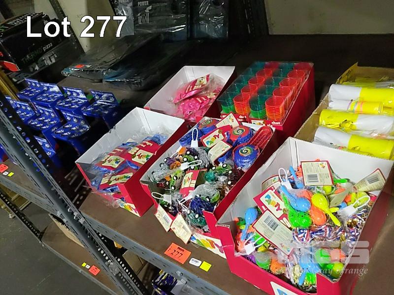 PARTY SUPPLIES, BALLOONS, GIFT TOYS, PARTY SHOT GLASSES, 1 x SHELF