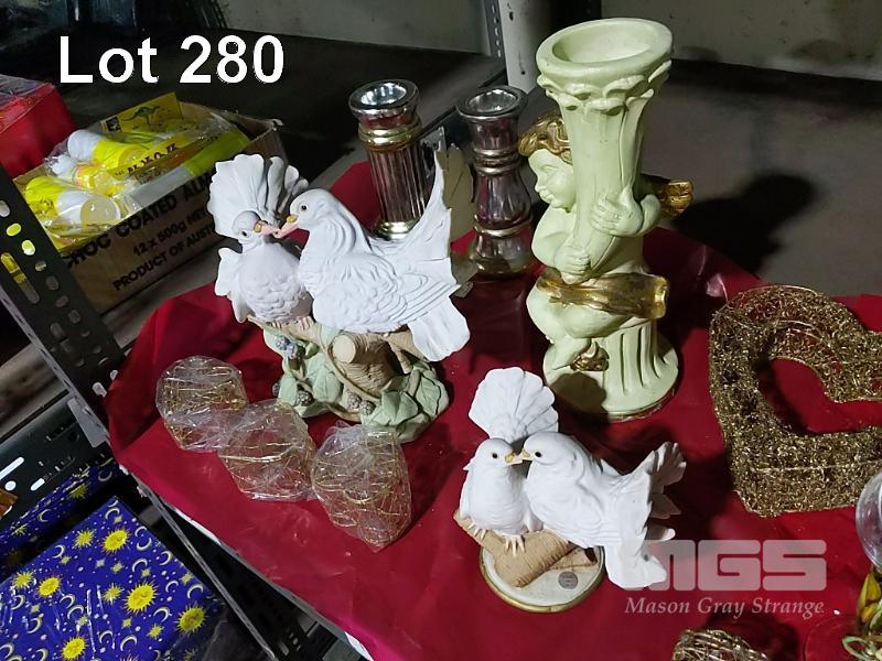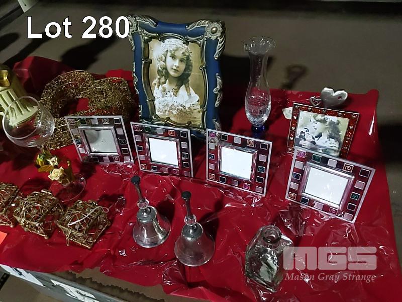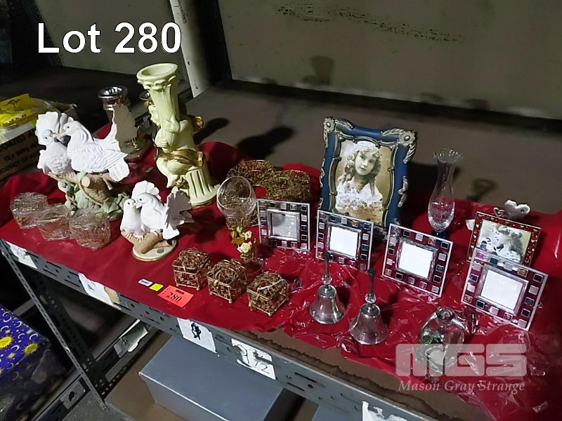 ASSORTED FIGURINES, INCLUDING DOVE & PICTURE FRAMES, 1 x SHELF