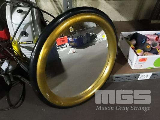 CIRCULAR WALL MIRROR BLACK & GOLD PAINTED WOODEN FRAME