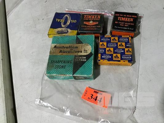 NEW OLD STOCK PARTS IN ORIGINAL BOXES INC HOLDEN, TIMKEN, REPCO OIL SEAT & SHARPENING STONE