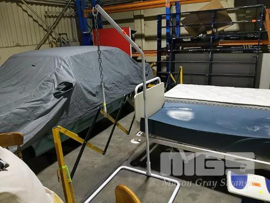 FREESTANDING OVER-BED TRANSFER POLE WITH MEDICAL TRAPEZE BAR.
