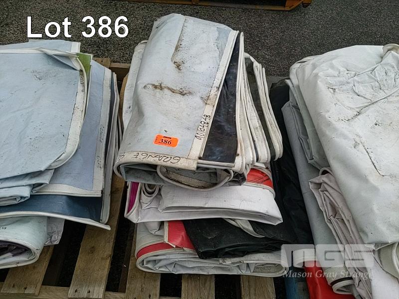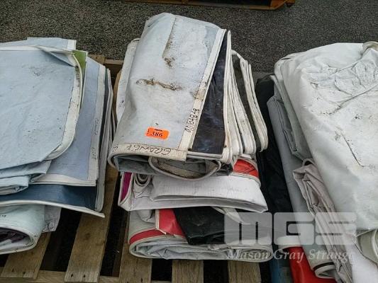 5 x ASSORTED, HEAVY DUTY ADVERTISING TARPS, UNKNOWN SIZES