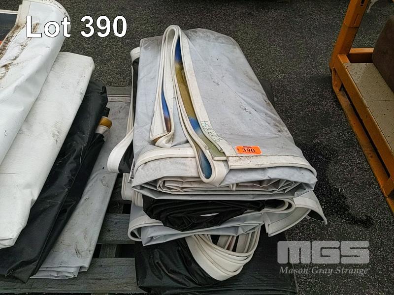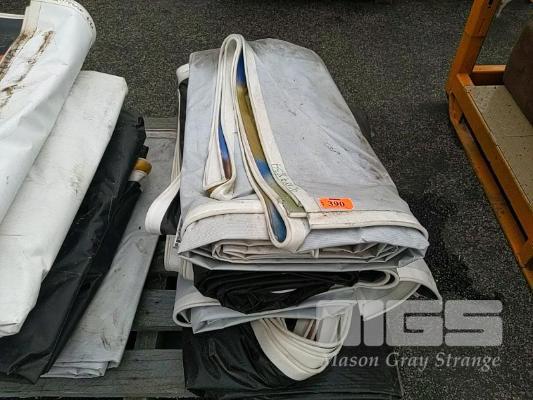 5 x ASSORTED, HEAVY DUTY ADVERTISING TARPS, UNKNOWN SIZES