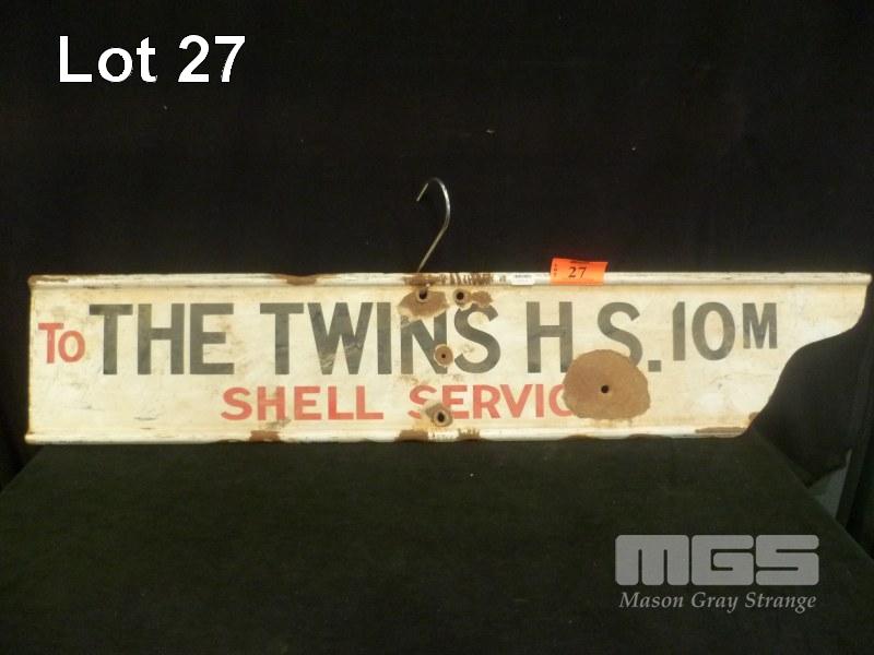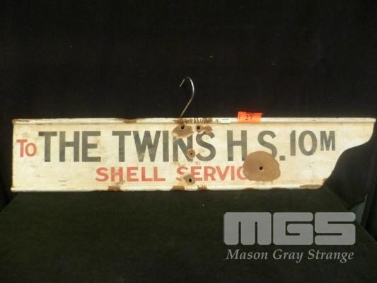 STREET SIGN, "THE TWINS H.S" TO SHELL SERVICE STATION