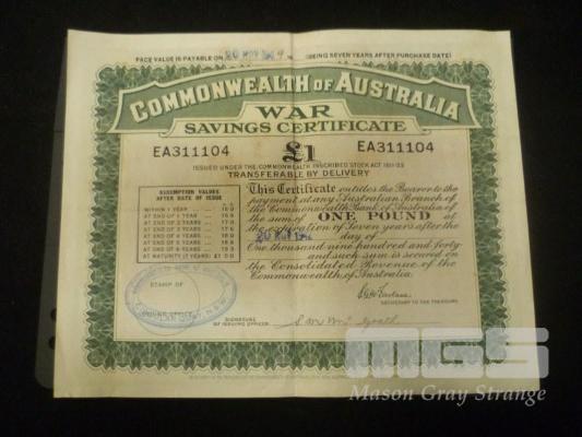 1942 WORLD WAR 2, 1 POUND WAR SAVINGS CERTIFICATE