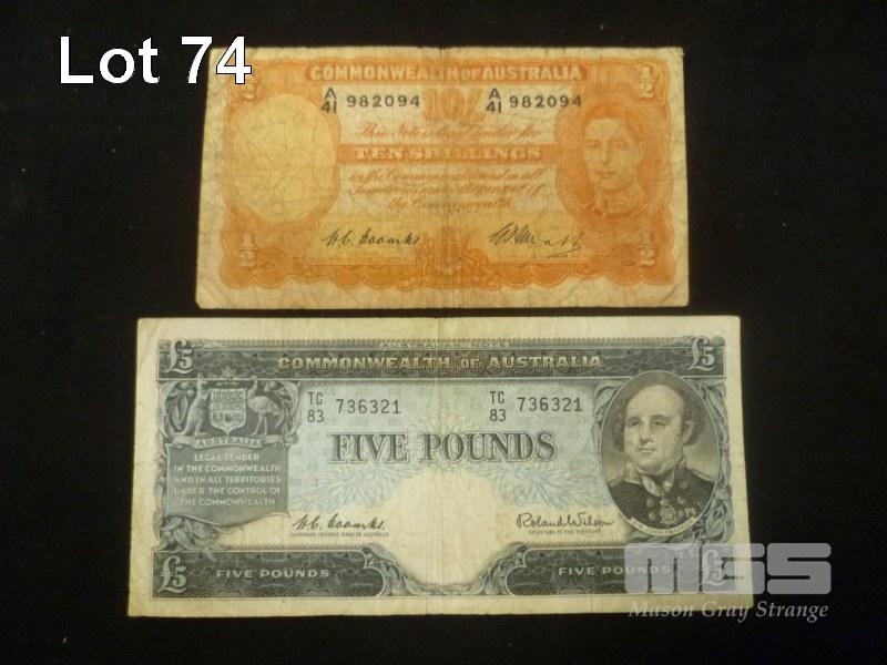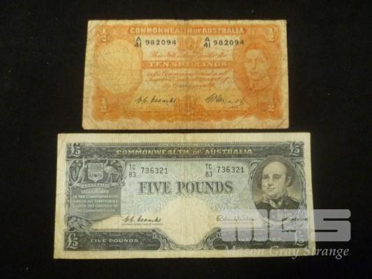 1949 10 SHILLING NOTE + 1960 5 POUND NOTE COOMBS WILSON / WATT