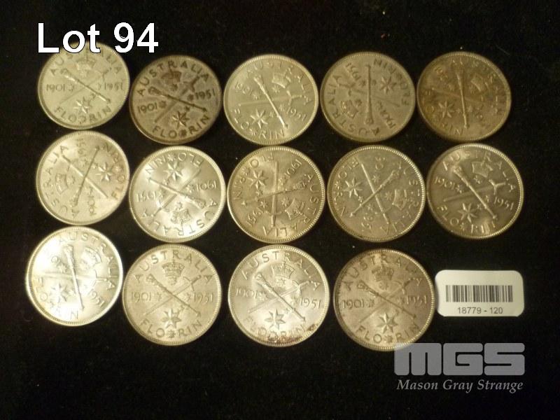 14 x AUSTRALIAN COMMEMORATIVE 1951 FLORINS