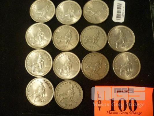 13 x AUSTRALIAN COMMEMORATIVE 1954 FLORINS