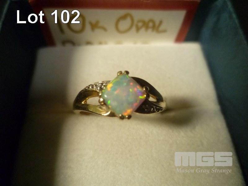 GOLD RING SET WITH OPAL MARKED 10K, 2.5gm