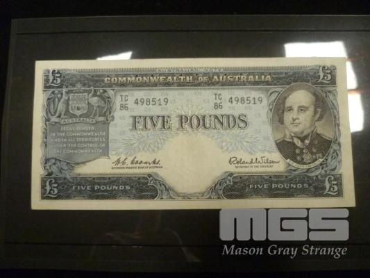 COMMONWEALTH OF AUSTRALIA, FIVE POUNDS, BANKNOTE, COOMBS/WILSON, TC86 498519, aUNC