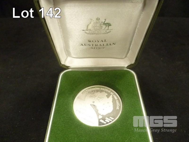 ROYAL AUSTRALIAN MINT, 1 OUNCE .999 SILVER, COMMEMMORATIVE MEDALLION, 'SIX COLONIES UNITED AS ONE NATION'