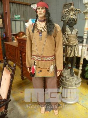 NATIVE AMERICAN INDIAN, SIOUX, CLOTHING WITH NECKLACES, HEAD DRESS & MANNEQUIN