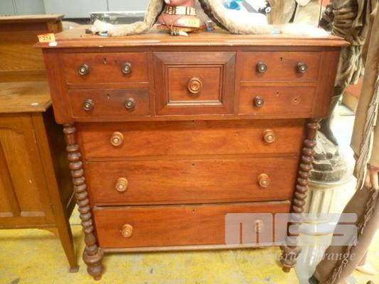 MAHOGANY 8 DRAWER CHEST WITH TURNED SIDE COLUMNS & MOTHER OF PEARL CENTRED KNOBS