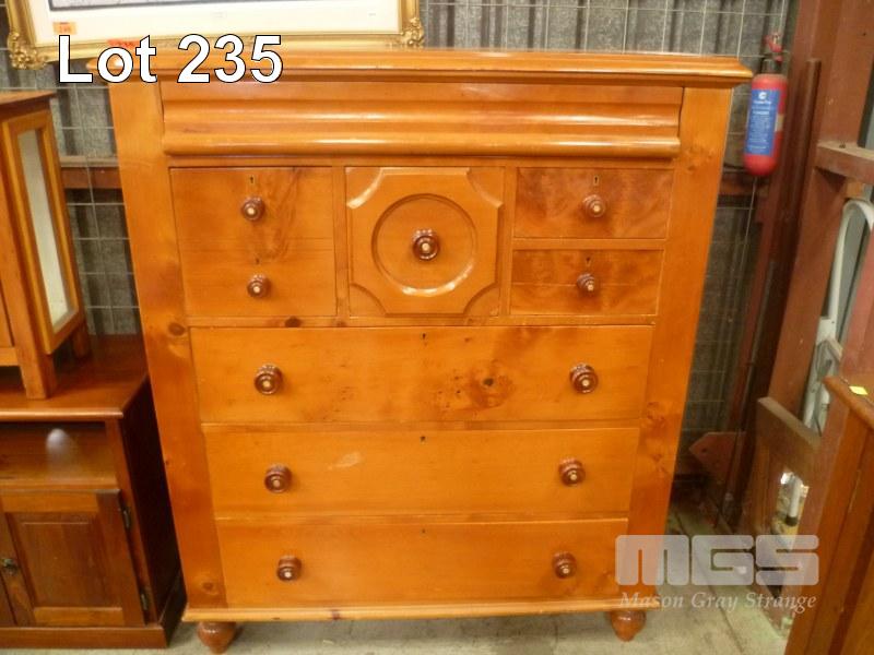 HUON PINE CHEST OF 8 DRAWERS, BUNG FEET